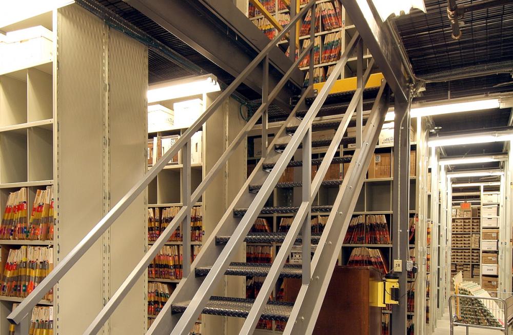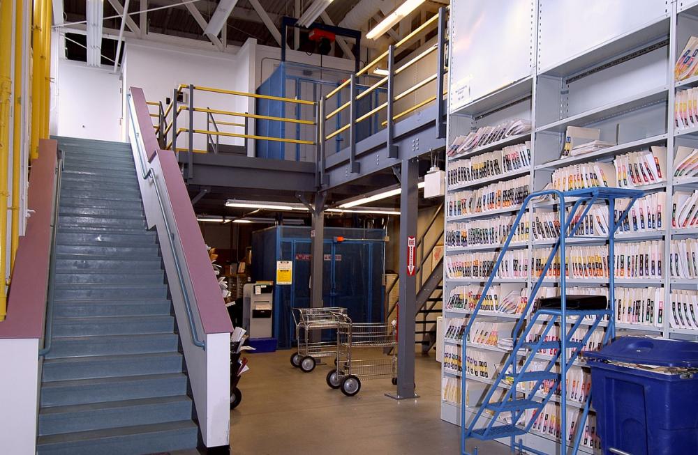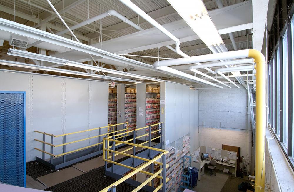 Located in The Concord Center at 10 Ferry Street, the File Retention Center of Concord Hospital houses vitally important medical records. JH Spain was hired to renovate and build out two floors of specialized storage space designed for the protection and preservation of large volumes of medical and administrative documentation. Uniquely functional stairs, catwalks, rails and shelving systems were designed and installed for ergonomic efficiencies.